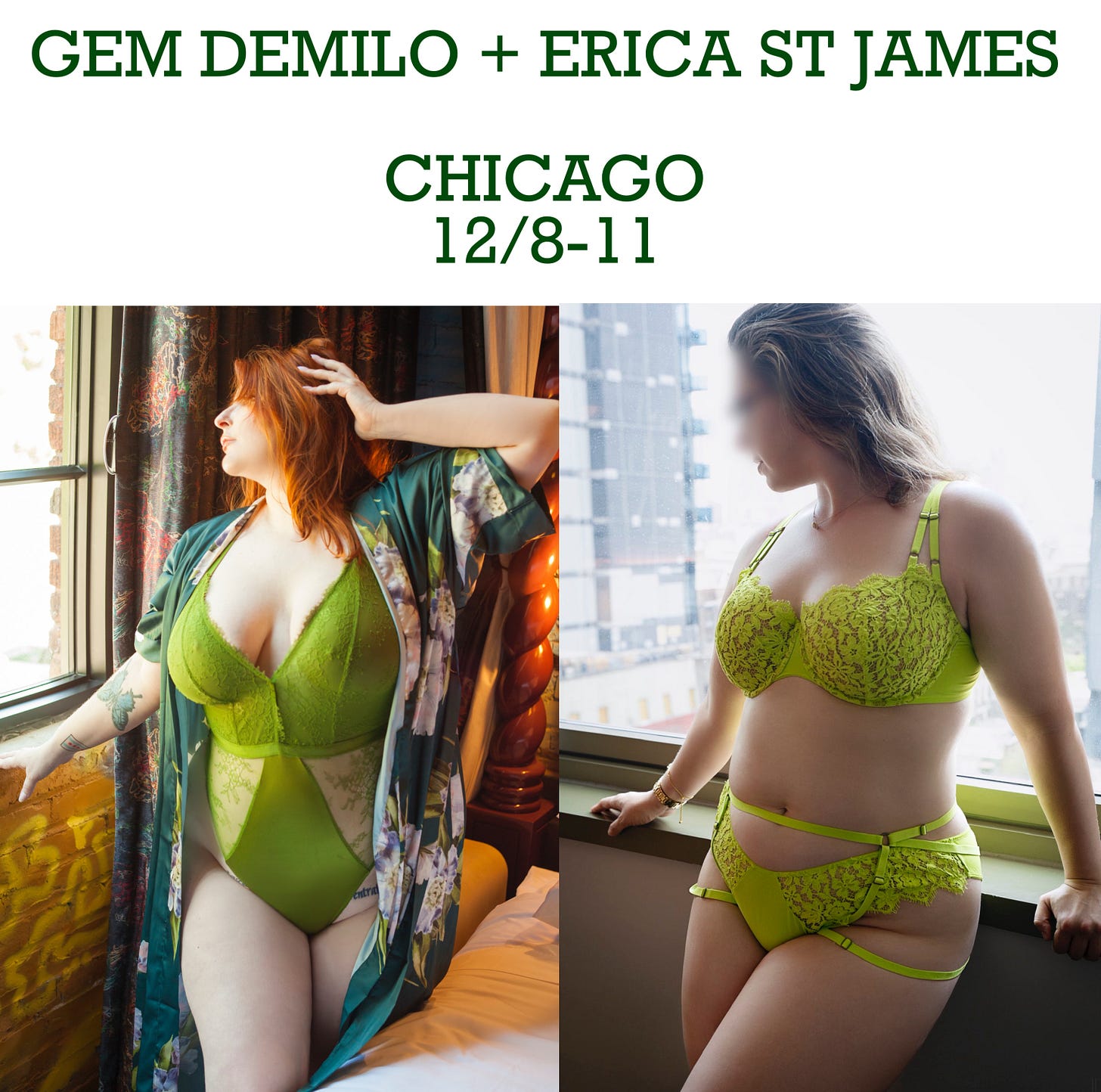 We are available for duos 12/8-11 in Chicago only. Our availability is already becoming limited, so make sure to reach out ASAP! You can email me at gem@professordemilo.com or Erica at meetericastjames@protonmail.com